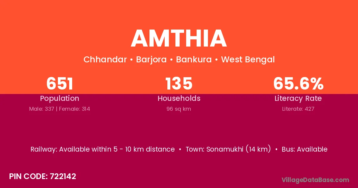 Sonamukhi (14 km) is the nearest town to Amthia village for major economic activities and is located approximately 14 km away.