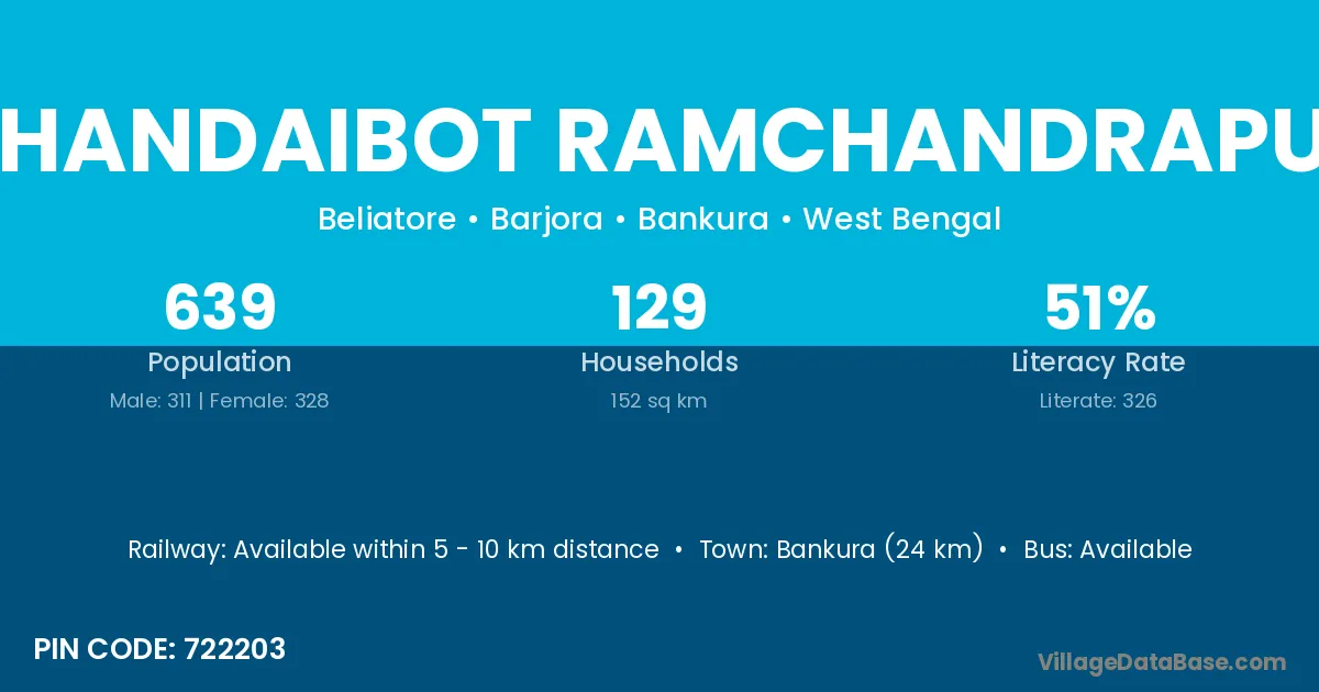 Bankura (24 km) is the nearest town to Chandaibot Ramchandrapur village for major economic activities and is located approximately 24 km away.