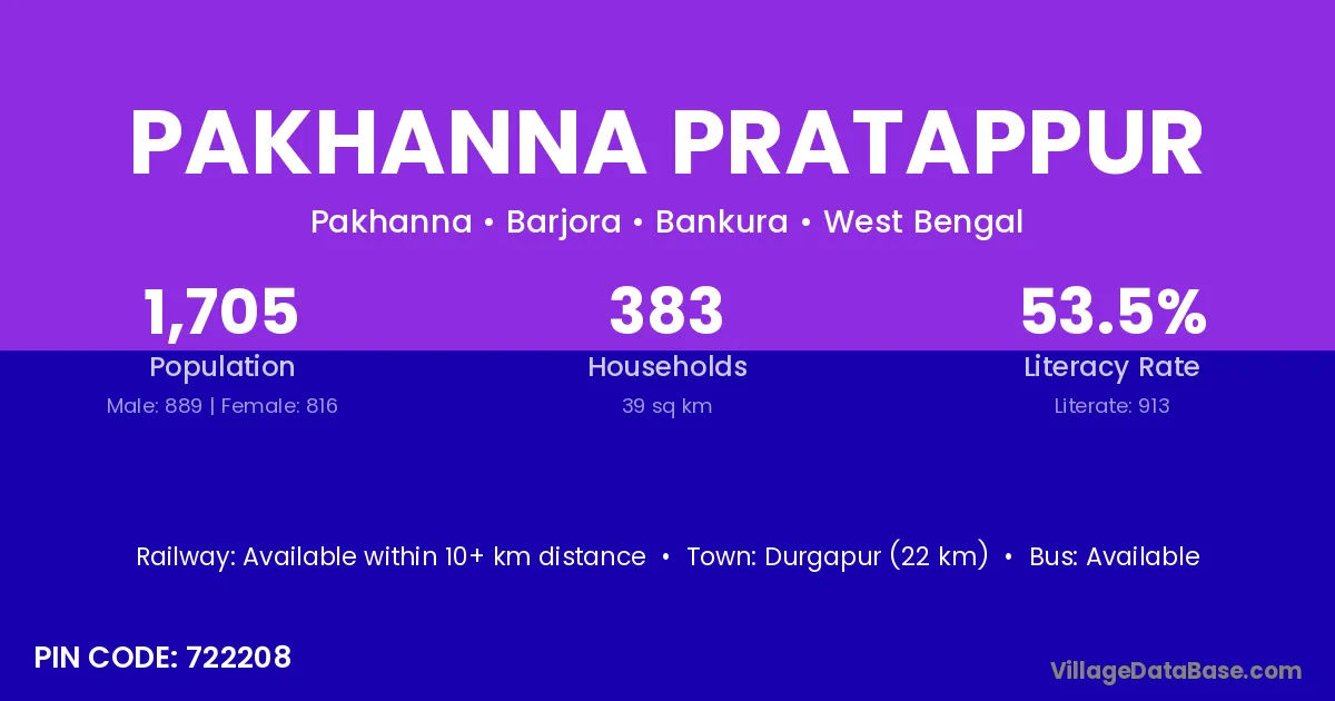 Durgapur (22 km) is the nearest town to Pakhanna Pratappur village for major economic activities and is located approximately 22 km away.