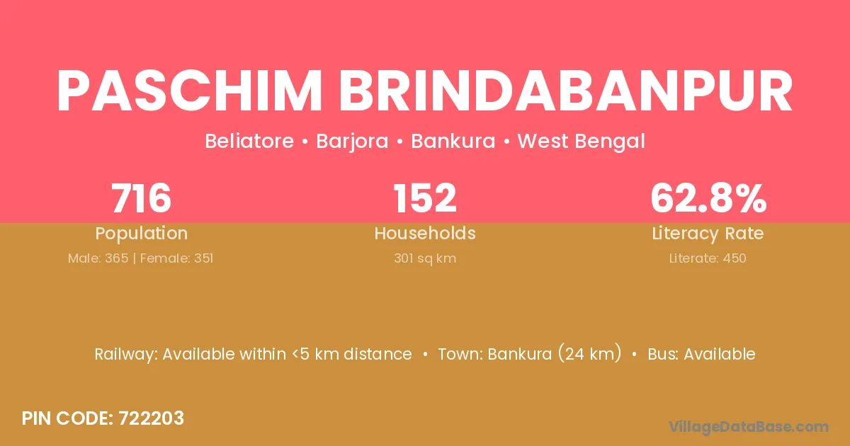 Paschim Brindabanpur village has a total population of 716 people, of which 365 are males and 351 are females.