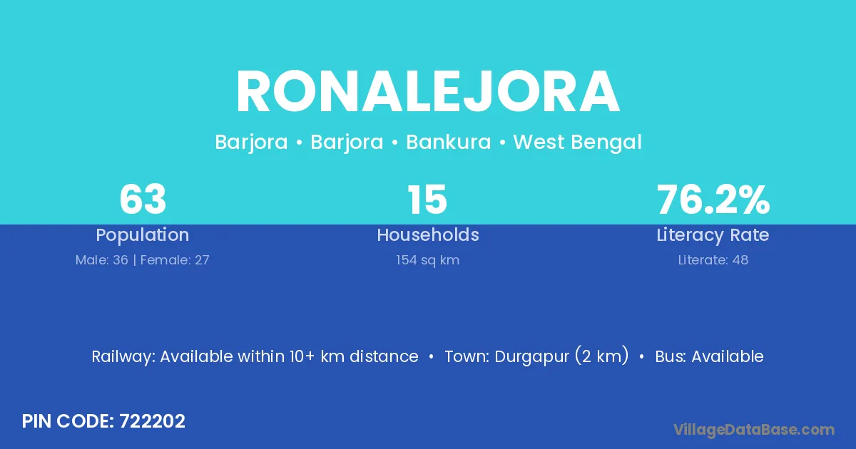 Durgapur (2 km) is the nearest town to Ronalejora village for major economic activities and is located approximately 2 km away.