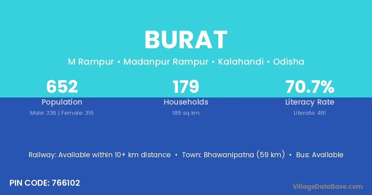 Bankura (34 km) is the nearest town to Burat village for major economic activities and is located approximately 34 km away.