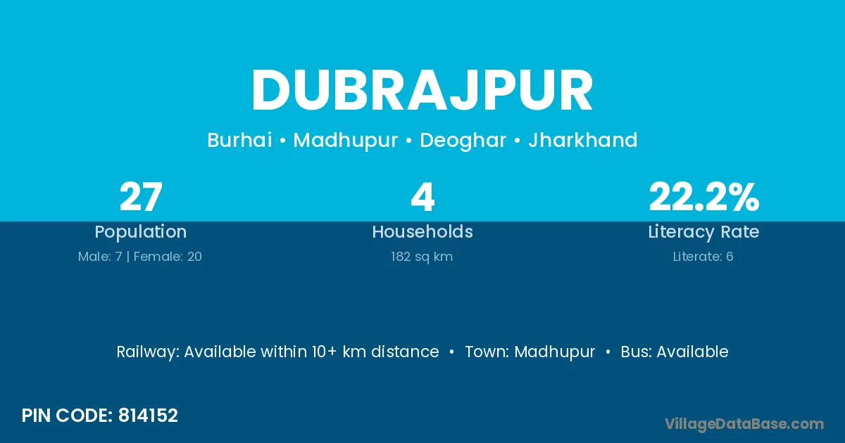 Kamarkuli (1 km) is the nearest town to Dubrajpur village for major economic activities and is located approximately 1 km away.