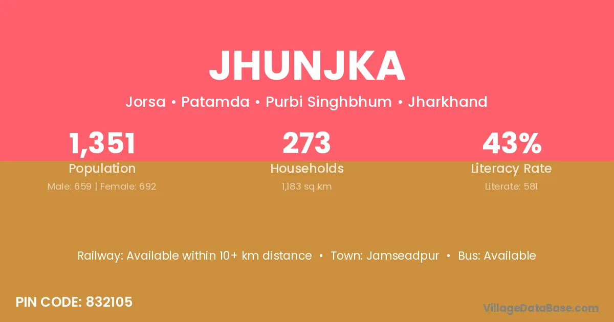 Jhunjka village has a total population of 1,721 people, of which 876 are males and 845 are females.