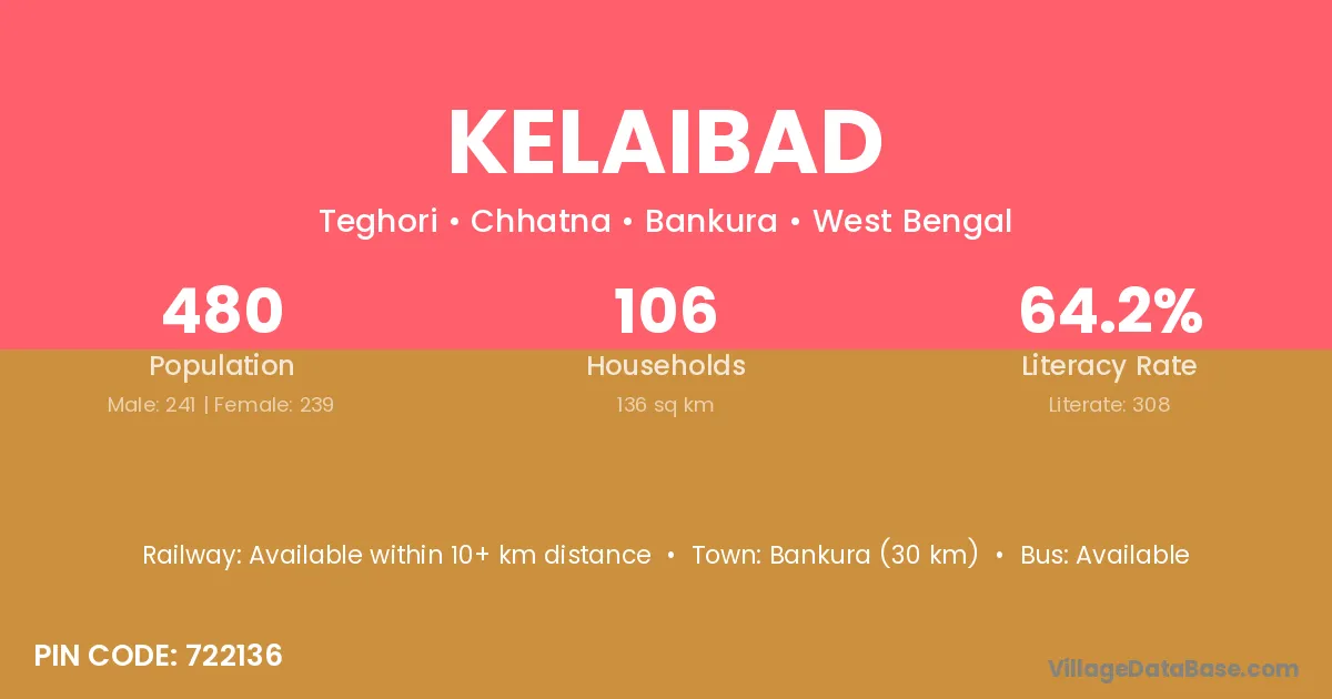 Bankura (30 km) is the nearest town to Kelaibad village for major economic activities and is located approximately 30 km away.
