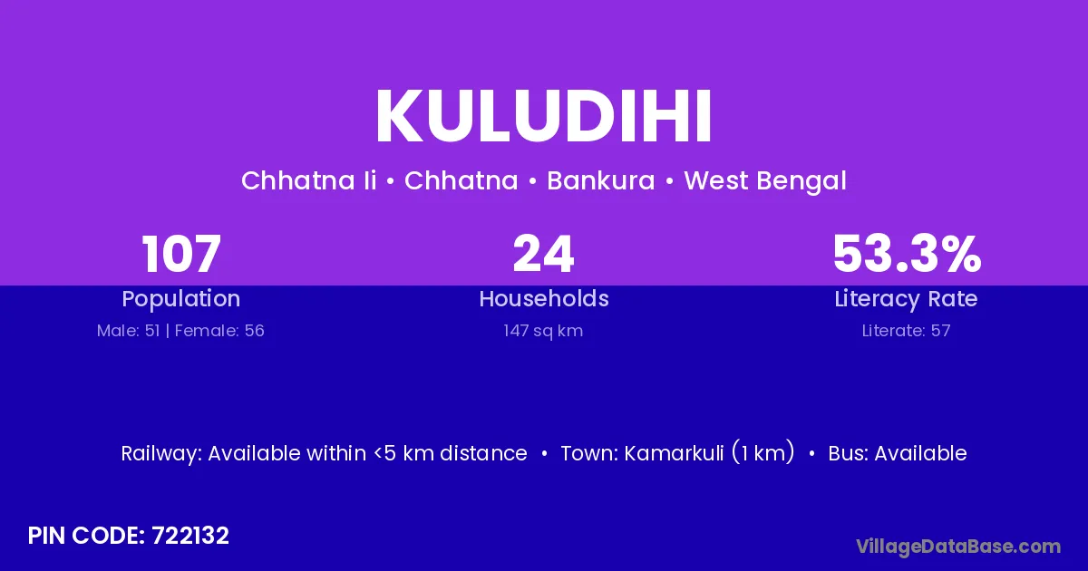 Kamarkuli (1 km) is the nearest town to Kuludihi village for major economic activities and is located approximately 1 km away.