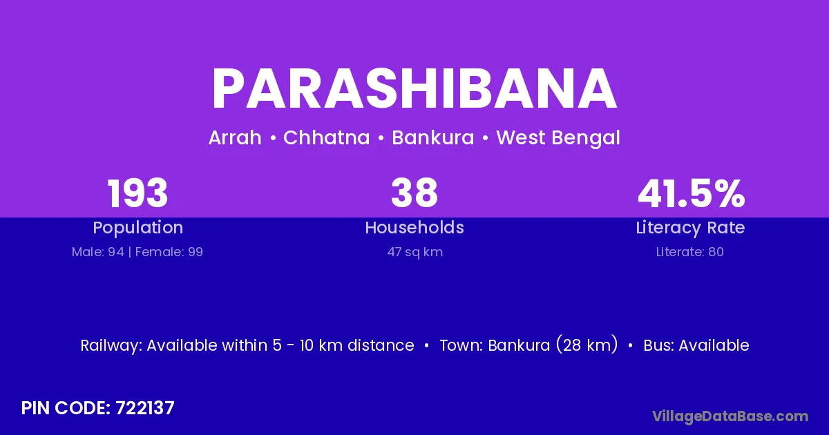 Bankura (28 km) is the nearest town to Parashibana village for major economic activities and is located approximately 28 km away.
