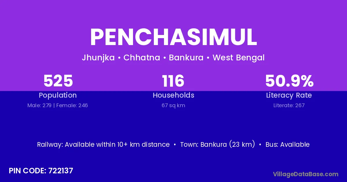 Bankura (23 km) is the nearest town to Penchasimul village for major economic activities and is located approximately 23 km away.