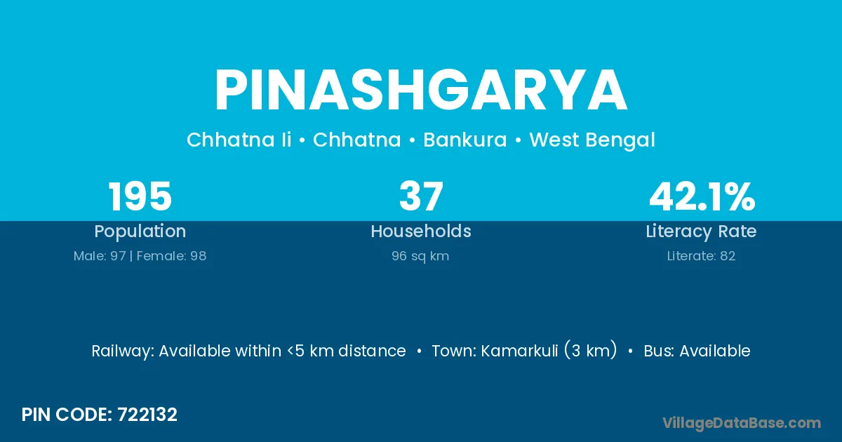 Kamarkuli (3 km) is the nearest town to Pinashgarya village for major economic activities and is located approximately 3 km away.