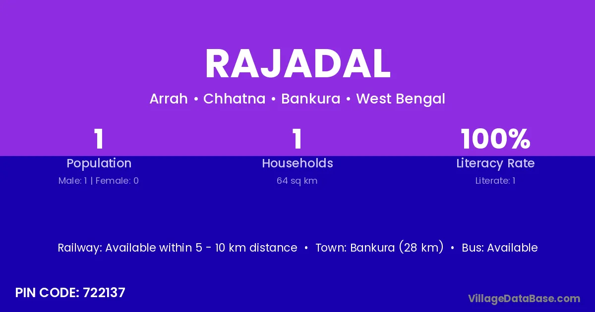 Bankura (28 km) is the nearest town to Rajadal village for major economic activities and is located approximately 28 km away.
