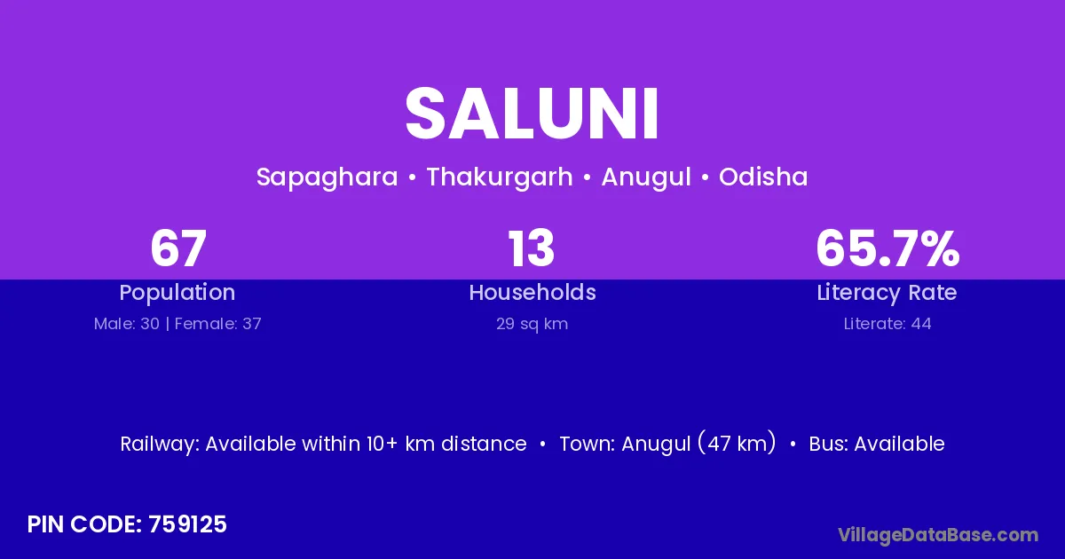 Saluni village has a total population of 2,286 people, of which 1,158 are males and 1,128 are females.