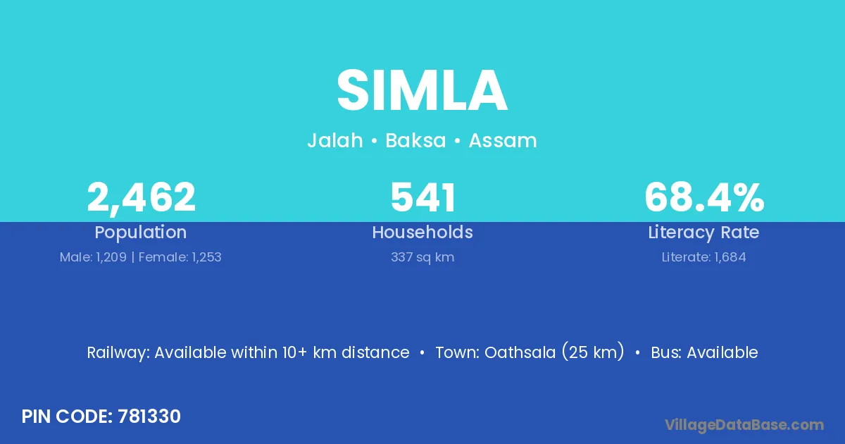 Bankura (33 km) is the nearest town to Simla village for major economic activities and is located approximately 33 km away.