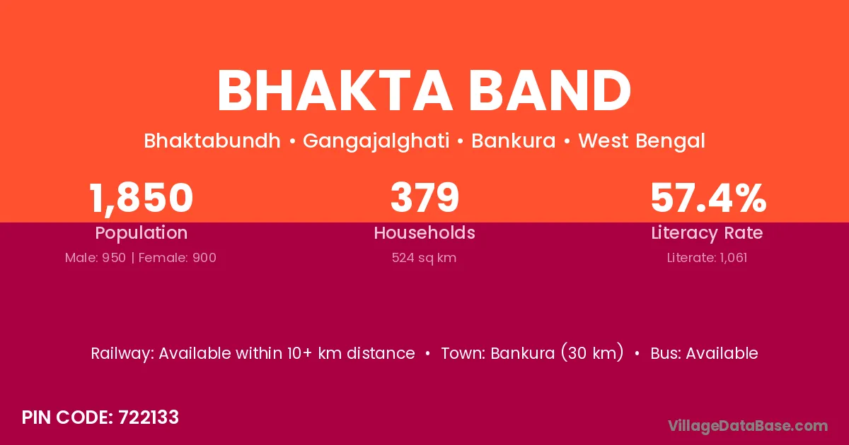Bankura (30 km) is the nearest town to Bhakta Band village for major economic activities and is located approximately 30 km away.