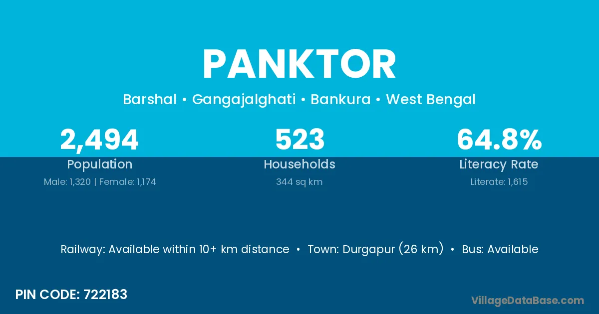 Durgapur (26 km) is the nearest town to Panktor village for major economic activities and is located approximately 26 km away.