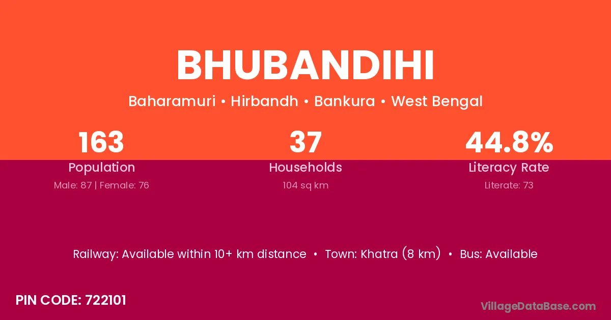 Khatra (8 km) is the nearest town to Bhubandihi village for major economic activities and is located approximately 8 km away.