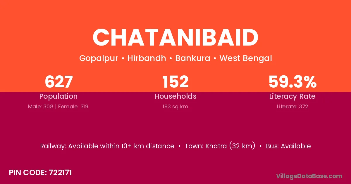 Khatra (32 km) is the nearest town to Chatanibaid village for major economic activities and is located approximately 32 km away.