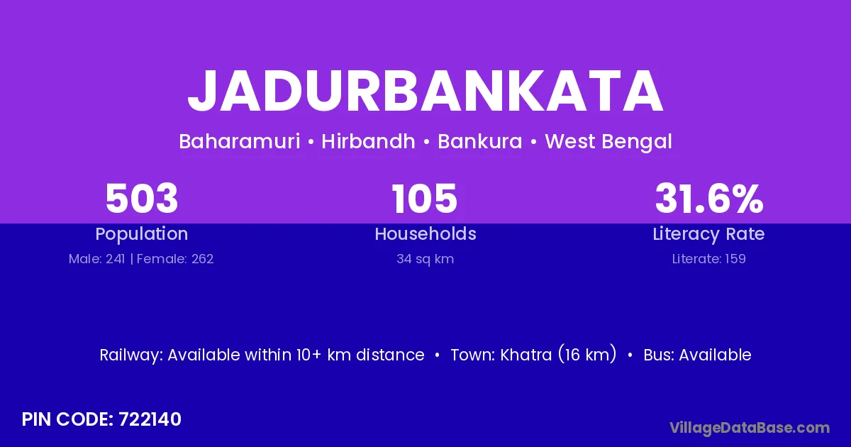 Khatra (16 km) is the nearest town to Jadurbankata village for major economic activities and is located approximately 16 km away.
