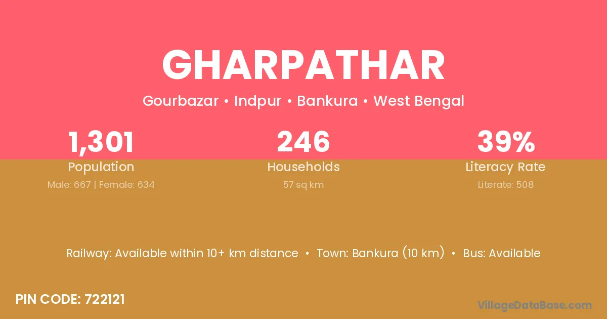 Bankura (10 km) is the nearest town to Gharpathar village for major economic activities and is located approximately 10 km away.