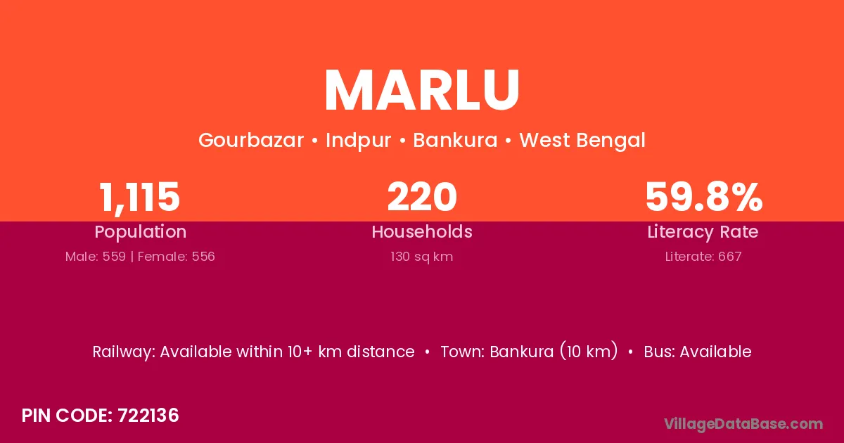 Bankura (10 km) is the nearest town to Marlu village for major economic activities and is located approximately 10 km away.