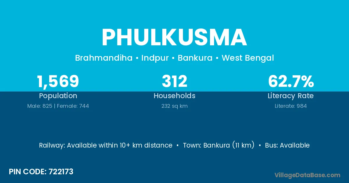 Bankura (11 km) is the nearest town to Phulkusma village for major economic activities and is located approximately 11 km away.