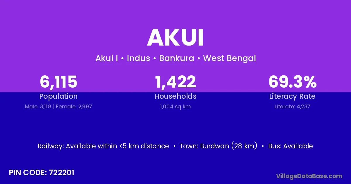 Burdwan (28 km) is the nearest town to Akui village for major economic activities and is located approximately 28 km away.