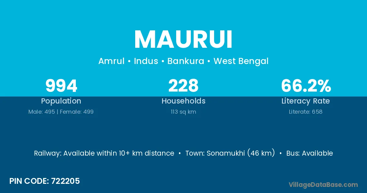 Sonamukhi (46 km) is the nearest town to Maurui village for major economic activities and is located approximately 46 km away.