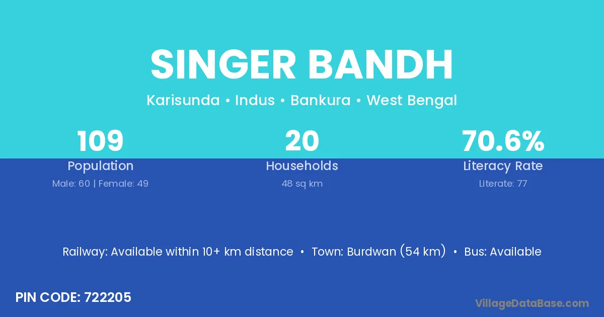 Burdwan (54 km) is the nearest town to Singer Bandh village for major economic activities and is located approximately 54 km away.