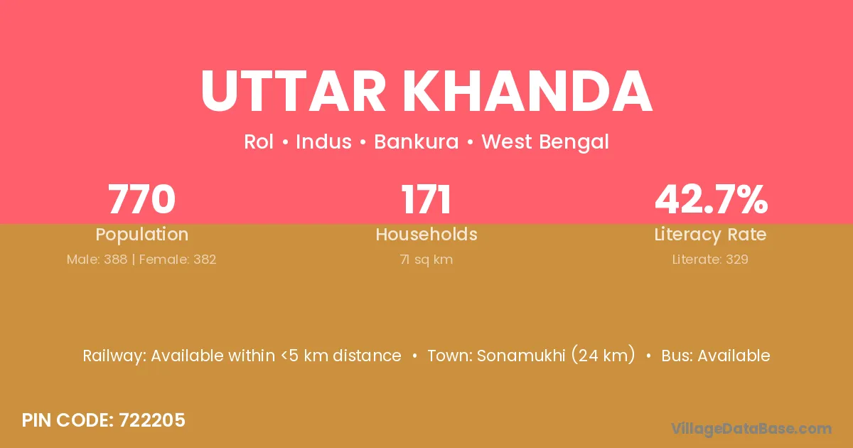 Sonamukhi (24 km) is the nearest town to Uttar Khanda village for major economic activities and is located approximately 24 km away.