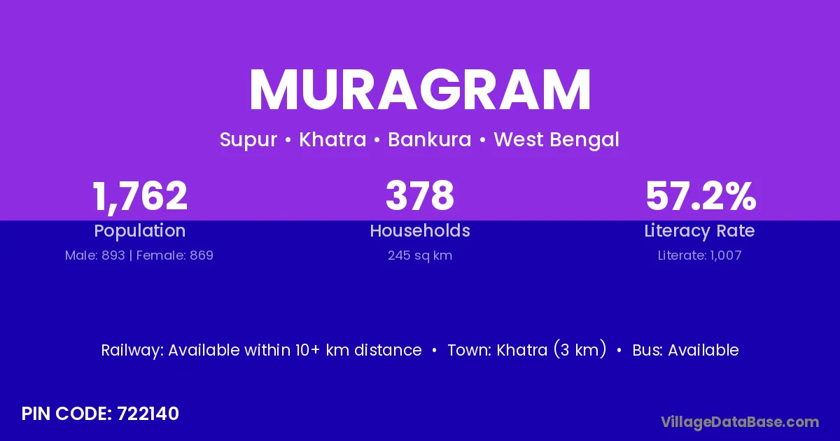 Khatra (3 km) is the nearest town to Muragram village for major economic activities and is located approximately 3 km away.