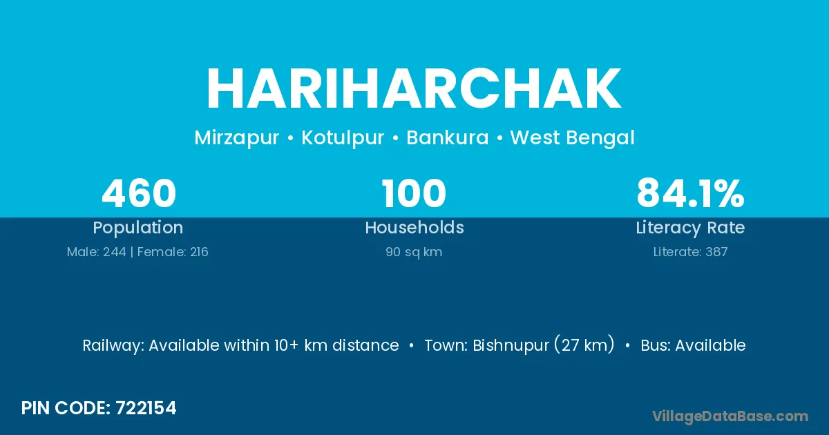 Bishnupur (27 km) is the nearest town to Hariharchak village for major economic activities and is located approximately 27 km away.