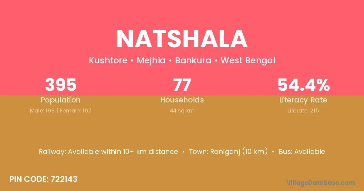 Raniganj (10 km) is the nearest town to Natshala village for major economic activities and is located approximately 10 km away.