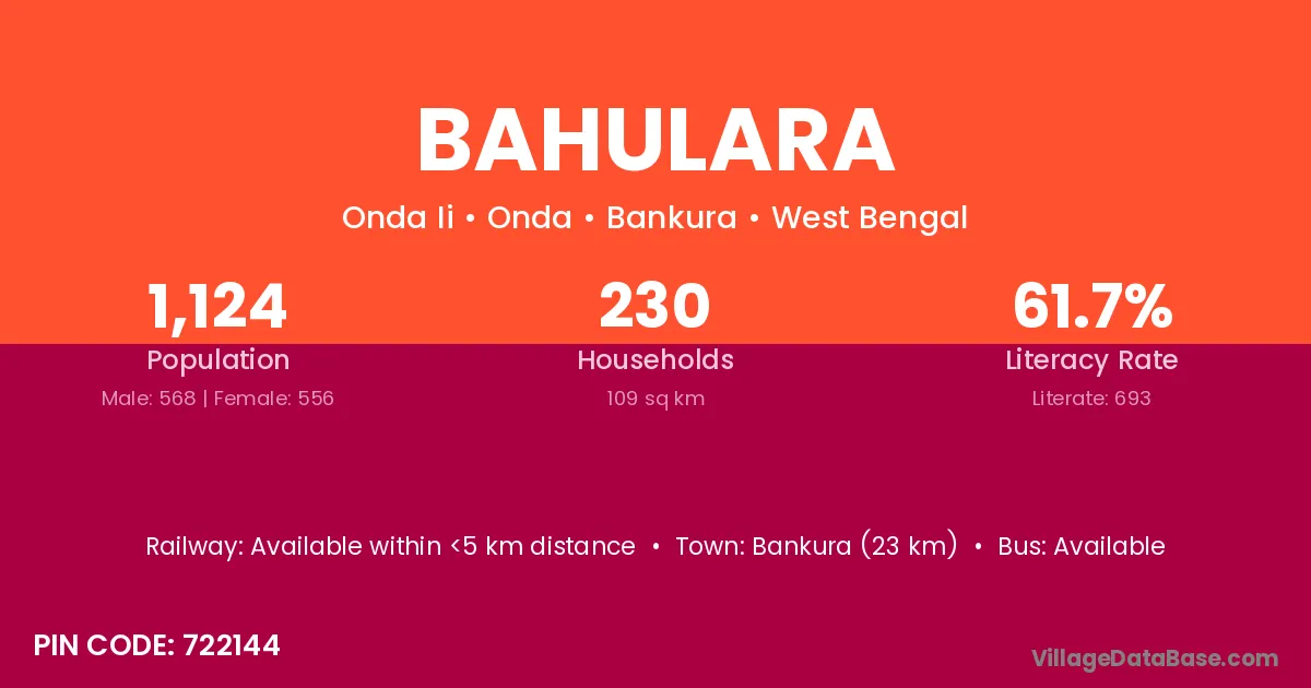 Bankura (23 km) is the nearest town to Bahulara village for major economic activities and is located approximately 23 km away.