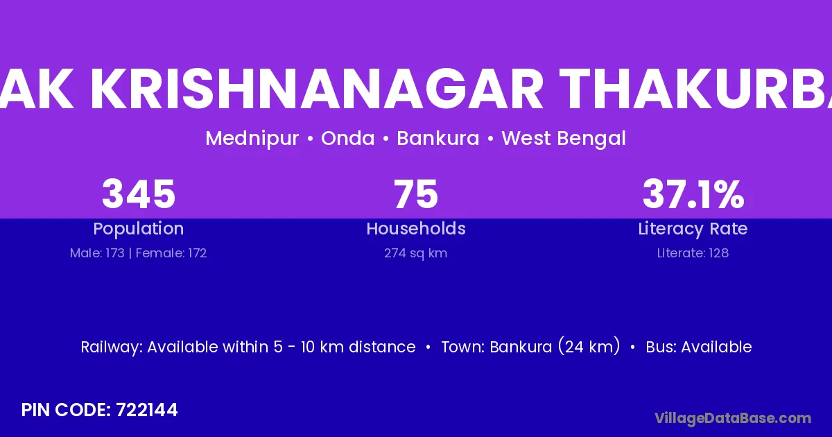 Chak Krishnanagar Thakurbari village has a total population of 345 people, of which 173 are males and 172 are females.