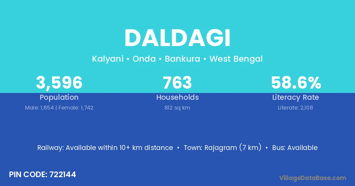 Rajagram (7 km) is the nearest town to Daldagi village for major economic activities and is located approximately 7 km away.