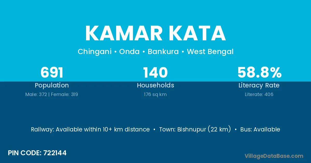 Bishnupur (22 km) is the nearest town to Kamar Kata village for major economic activities and is located approximately 22 km away.