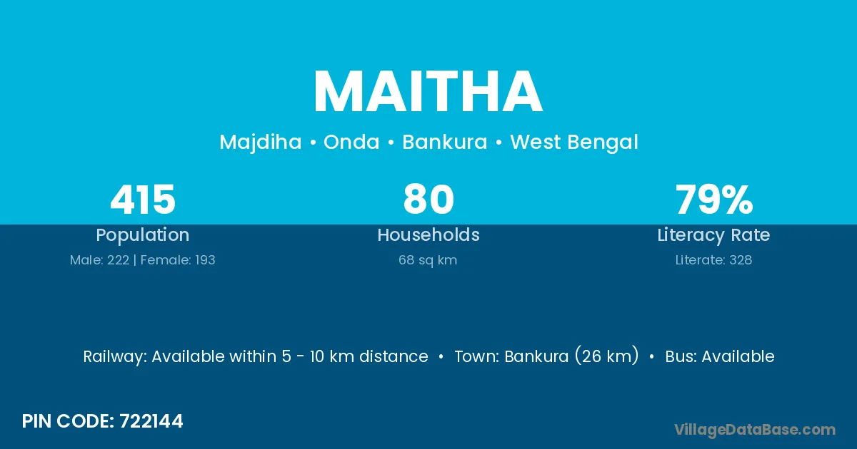 Bankura (26 km) is the nearest town to Maitha village for major economic activities and is located approximately 26 km away.
