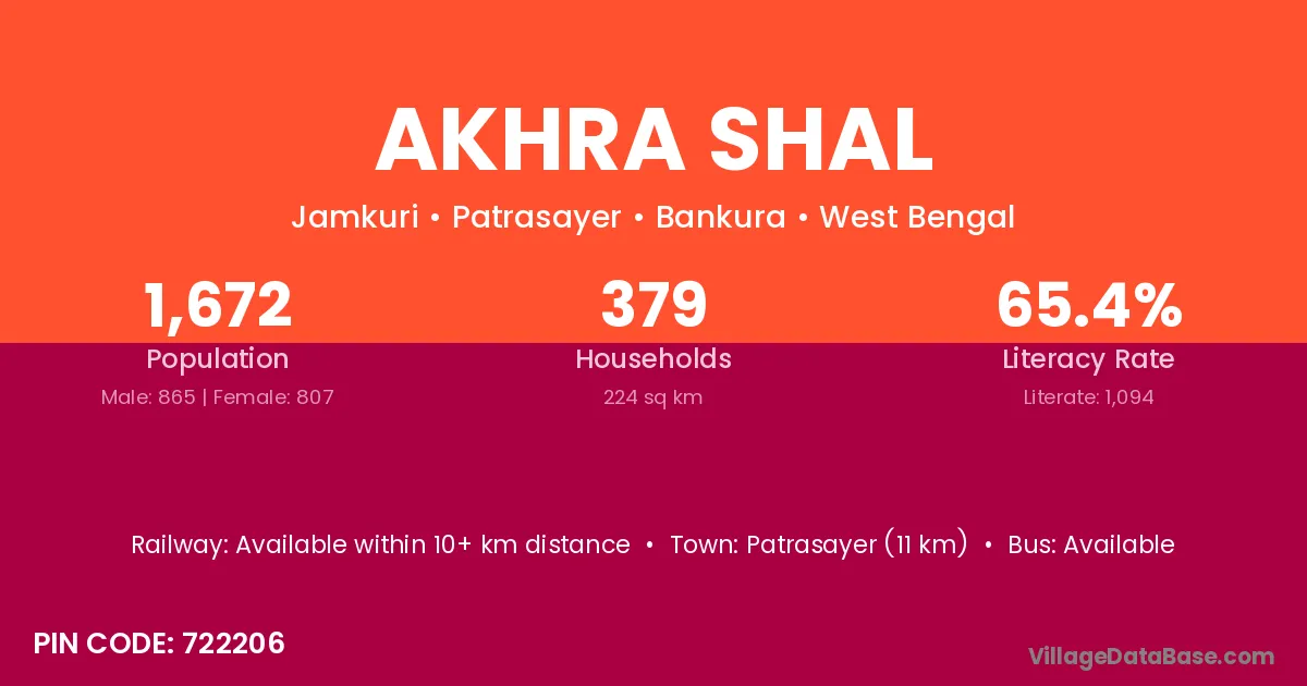 Patrasayer (11 km) is the nearest town to Akhra Shal village for major economic activities and is located approximately 11 km away.