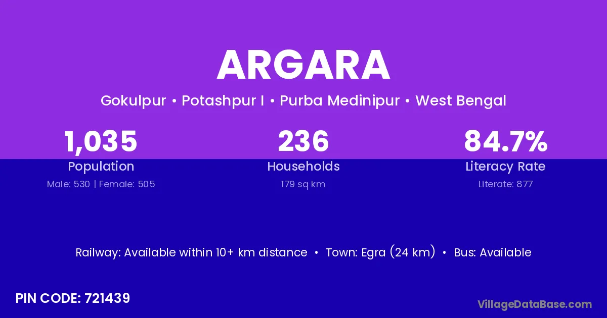 Patrasayer (10 km) is the nearest town to Argara village for major economic activities and is located approximately 10 km away.