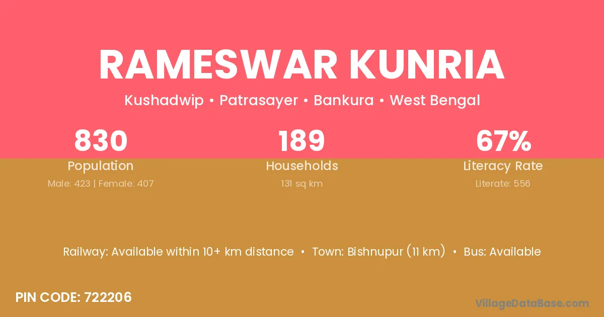 According to Census 2011 information, the village code of Rameswar Kunria village is 722206.