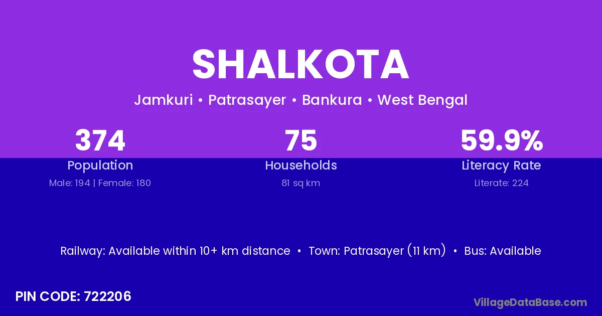 According to Census 2011 information, the village code of Shalkota village is 722206.