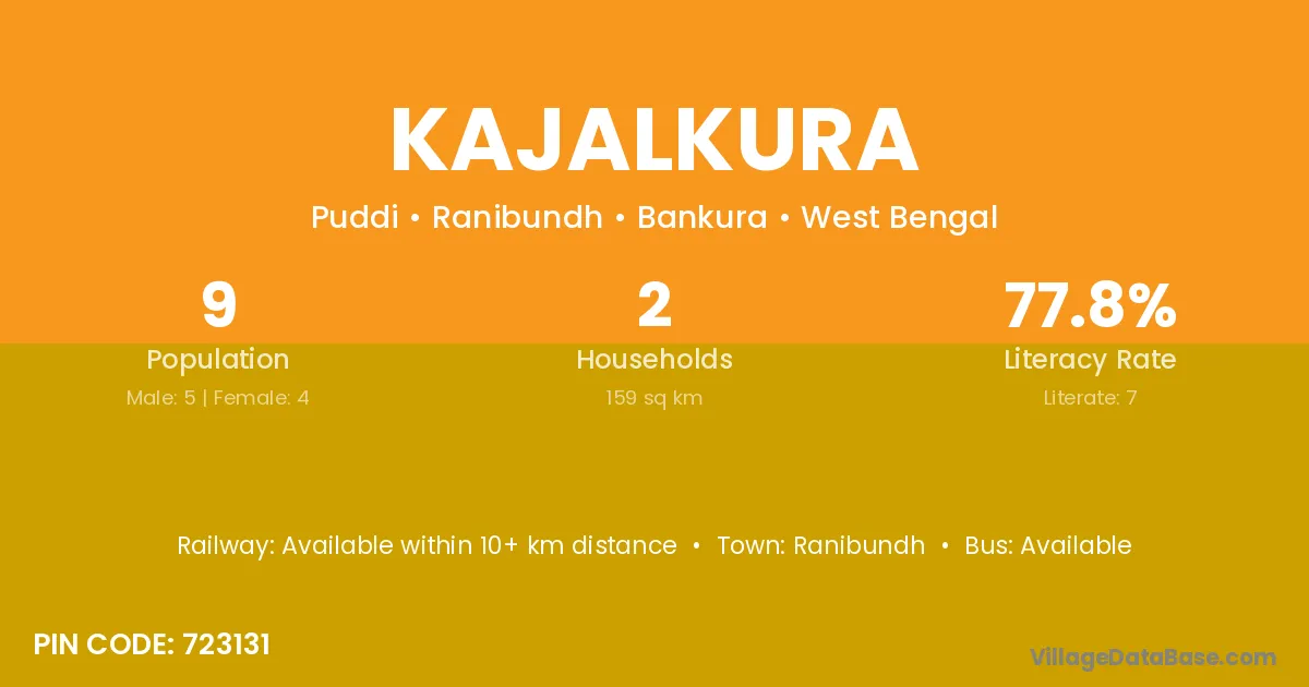 Khatra (10 km) is the nearest town to Kajalkura village for major economic activities and is located approximately 10 km away.