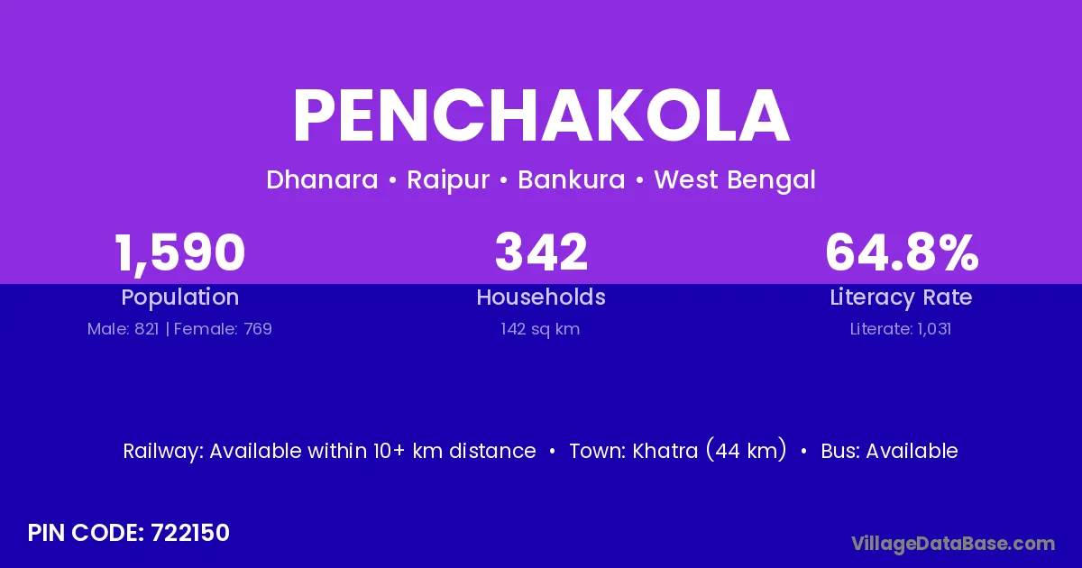 Khatra (44 km) is the nearest town to Penchakola village for major economic activities and is located approximately 44 km away.