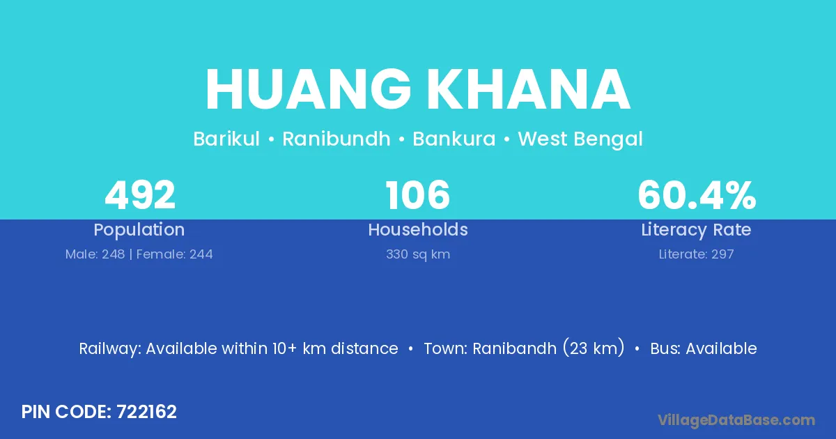 Huang Khana village has a total population of 492 people, of which 248 are males and 244 are females.