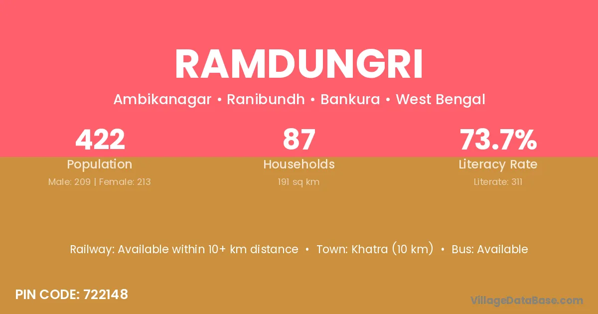 Khatra (10 km) is the nearest town to Ramdungri village for major economic activities and is located approximately 10 km away.