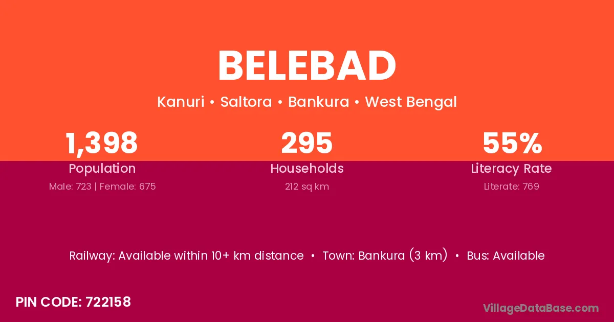 Bankura (3 km) is the nearest town to Belebad village for major economic activities and is located approximately 3 km away.