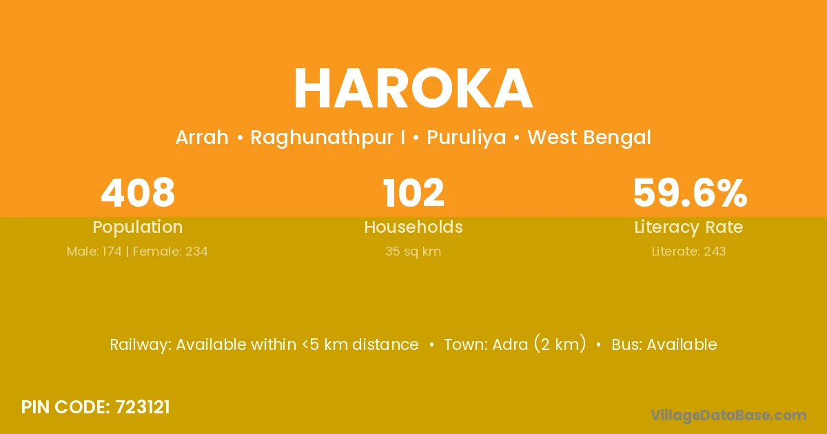 Bankura (3 km) is the nearest town to Haroka village for major economic activities and is located approximately 3 km away.
