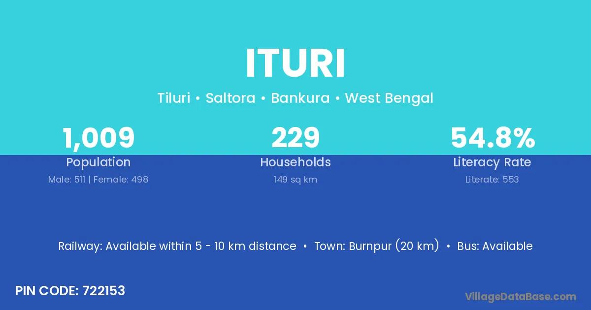 Burnpur (20 km) is the nearest town to Ituri village for major economic activities and is located approximately 20 km away.