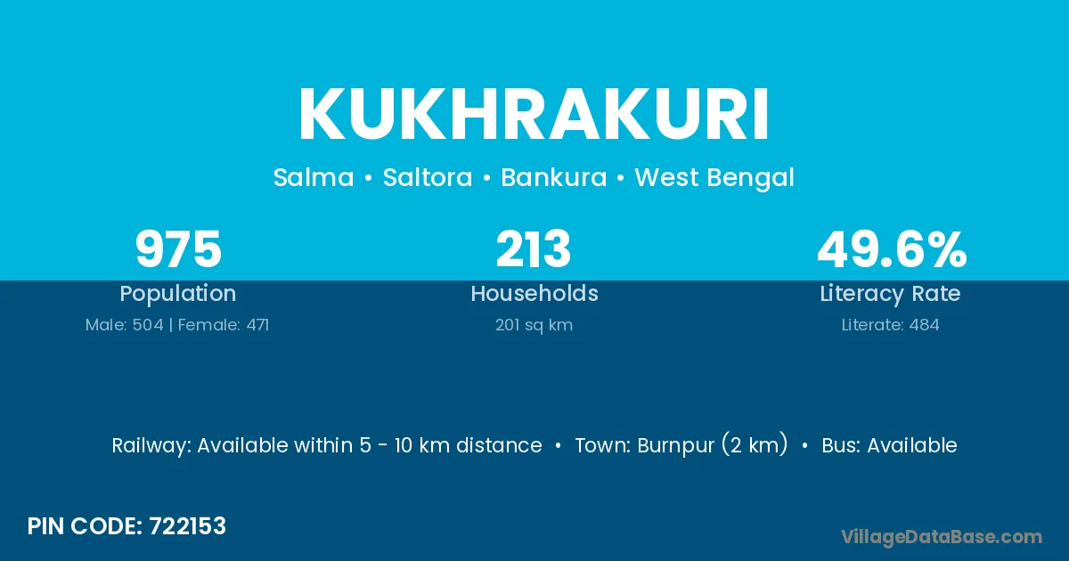 Burnpur (2 km) is the nearest town to Kukhrakuri village for major economic activities and is located approximately 2 km away.