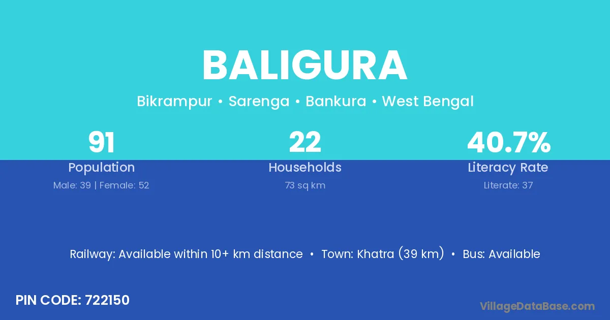 Khatra (39 km) is the nearest town to Baligura village for major economic activities and is located approximately 39 km away.