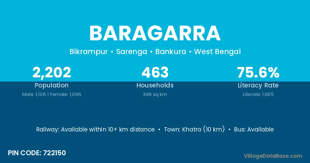 Khatra (10 km) is the nearest town to Baragarra village for major economic activities and is located approximately 10 km away.